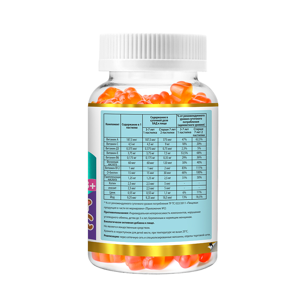 | Витамин Д 3 | 0,75 мкг | 0,75 мкг | 1,5 мкг | 7,5% | 15% |